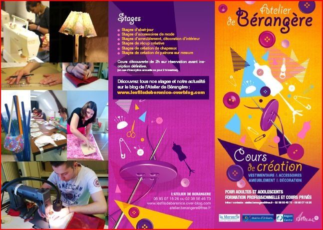 C'est la rentrée...2013/2014 le tramplin créatif Publié le 10 Septembre 2013 par Atelier de Berangere Catégories : #Actualité Cours, #Divers Bonjour à toutes Merci à vous pour votre précieuse présence au forum d'Olivet ainsi qu'a Orléans en Fête . Je vous rappel que les cours reprennent le lundi 30 Septembre 2013 à partir de 14hr. Agnès, Nicolas, Rachel, Véronique et moi même vous souhaitons une bonne année créative aux sein de l'atelier. Que vos aiguillent dansent , que vos ciseaux vous content de belles histoires afin d'éveiller vos divers sens créatifs. Le nouveau cour du "Sur-mesure" ainsi que son contenu est indiqué dans la rubrique PAGE du blog; son TARIF hors adhésion annuelle dans la rubrique TARIFS. PS: Je viens de feuilleter le dernier Burda /Savoir-faire Couture N3 sur les divers montages de cols, poignets, manches,et assemblage de doublure... que toutes les "Couturières" courent l'acheter il est indispensable à votre savoir faire. Bonne Rentrée Associative A bientôt Bérangère voici la nouvelle plaquette, vous pouvez la détailler , ainsi que le Burda Savoir-faire Voir les commentaires Partager cet article Repost0