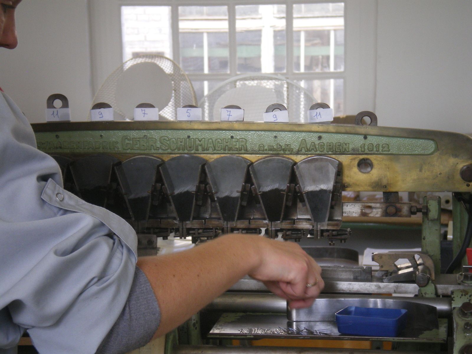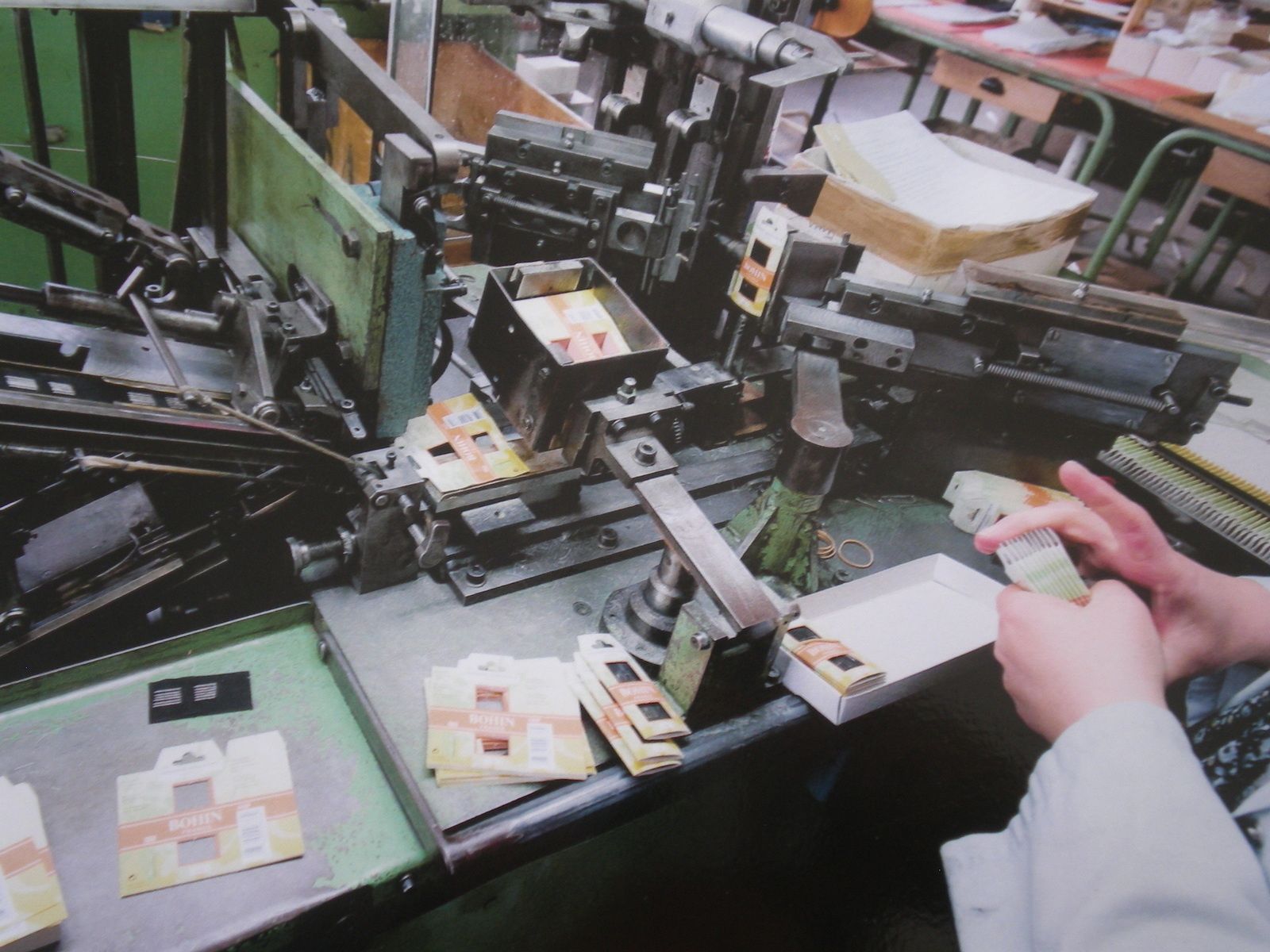 Histoire d'Aiguilles, épingles, ciseaux etc Publié le 11 Octobre 2014 par L'Atelier de Berangere Catégories : #Découverte Et hop , une envie d'escapade par ce beau temps avant d'affronter le frimas hivernal... Quelle direction? et bien Saint Sulpice sur Risle, prés de l'Aigle en Normandie oui l'Aigle, charmant petit village de l'Orme aux "cottadges" Anglais pour visiter la Manufacture BOHIN. Musée et Atelier de production made in France des Aiguilles, épingles, ciseaux etc BOHIN France perpétue la tradition épinglerie et aiguilliére de sa région. En activité depuis plus de 180 ans et implantée dans une trentaine de pays, l'entreprise expose son exceptionnel patrimoine au bord de la riviére et conserve la mémoire industrielle de la France. Savez-vous qu'il faut compter 2 mois et 27 étapes de fabrication avant de retrouver une aiguille en magasin? Création en AIGUILLE BOHIN de cette oeuvre par un jeune créateur made in France en juin 2014 Traversant les 2 étages des ateliers de fabrication où oeuvrent les salariés de l'entreprise, le public assiste à la naissance des aiguilles à coudres, des épingles de sûreté et des épingles à tête de verre. Nous sommes seulement séparés par un garde-corps, des employés aux mains "aiguillées" de leur savoir faire ancestral afin de sentir et détecter les malfacons. Nous découvrons aussi des machines qui pour certaines datent du 19é siècle. Il n'y à pas de "rendement" pour les employés, et surtout, tout n'est pas mécanisé....chaque employé repond à nos questions et n'hésite surtout pas à nous expliquer les différentes étapes de création et fabrication des aiguilles Certains employés sont formés pour détecter, voir et ressentir les malfacons, les épingles BOHIN à tête de verre de Murano sont triées à la main, la pose du ruban de coton des 10 aiguilles sur les petits supports cartons, se réalise aussi manuellement etc.... Mon article serait beaucoup trop long si je me permettais de vous relater toutes les différentes étapes de création d'une aiguille, de ce fait je vous laisse regarder mes photos et vous conseille vivement de partir découvrir ce savoir faire Made in France, puis,le surprenant parcours muséographique mis en place, mais aussi filer à Alençon découvrir la création du point de dentelle et son histoire. Mais partez pour le weekend afin de profiter pleinement de ces richesses ancestrales et familliales. Je vous certifie qu'après ces magnifiques découvertes vous ne verrez plus jamais une aiguille, où une épingle de sûreté de la même façon, .... Aprés vos divers travaux d'aiguilles, celles-ci ne finiront plus dans la poubelle où les jolies petites têtes rouge, verte, jaune sous la semelle de vos fers à repasser..... (la suite plus bas) 1 partie de fabrication 18 photos Finition et mise en sachets Les épingles BOHIN à tête de verre de Murano, Bâton de pâte de verre de Murano, mise en place sur les épingles, fabrication, et tri . Merci de m'avoir suivie en images sur les chemins de la famille BOHIN. Bonne balade photographique. Bérangère Matiéres et fabrication des épingles à tête de verre Voir les commentaires Partager cet article Repost0