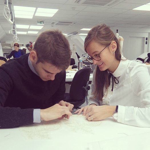 Défilé DIOR Haute Couture, Printemps Eté 2017 Publié le 26 Janvier 2017 par L'Atelier de Berangere Catégories : #Découverte Hello, je reviens vers vous avec de sublimes Créations de la Maison Dior. Maria Grazia Churi, nouvelle Directrice Artistique de la Maison DIOR, nous plonge dans un nouvel Univers, où plumes, strass, coiffes et sublimes coupes et étoffes me font rêver.Une entrée en matière réussie pour celle-ci, au siège de l' Avenue Montaigne.Ce défilé a eu lieu au Musée Rodin dans un écrin de verdure, je vous laisse le découvrir.Mais, oui, mais...car parmi les 1ères Mains des Ateliers Dior, je souhaite vous présenter Amaury COQUERET.Amaury, fait partie de la sélection des premières Mains des Ateliers DIOR de ce défilé Haute Couture Printemps/Eté 2017.Amaury, a passé deux années à l'Atelier de BERANGERE afin de découvrir si sa passion pouvait après son Bac général, le diriger vers les métiers de la Haute Couture.Chose faite, avec la découverte des bases, l'initiation au patronage et de l'exigence des techniques.Puis son Bac en poche, il prit son envol vers le Conservatoire des Arts et Techniques de la Mode géré par Gabrielle COT.De là, ses doigts agiles associés au savoir-faire de Madame COT, Meilleur Ouvrier de France en Couture Flou, l'on propulsé au rang du Meilleur Apprenti de France médaillé d'Or en 2015/2016, accompagné d'un nouveau diplôme.Depuis, Amaury a choisi le statut d'intérimaire et "parfait son savoir faire aux doigts d'or " dans de beaux Ateliers " Balmain, Azzedin Alaia, Dior. L'envie, la passion, la maîtrise du geste et des apprentissages, démontrent bien que les rêves peuvent se réaliser. Belle continuation Amaury et un immense merci pour ta simplicité bienveillante. Car oui la Couture c'est avant tout:Comme un virus qui nous pique, jour et nuit, hop la machine a coudre est de sortie, on oublie le ménage, les courses, les enfants et/ou le conjoint qui d'un seul coup nous dit :" heu, ma chérie qu'est ce que l'on mange aujourd'hui?" où :" c'est quoi tout ce bazar........grrr! tu fais du bruit avec ta machine, je ne peux pas regarder mon émission... Puis un jour, paf!, terminé le bidouillage, place à la découverte des techniques d'apprentissages, et de leurs mises en application en multipliant les matières et matériaux, afin d'arriver à de beaux résultats sans sauter d'étapes, ce qui n'enlève rien à la Création bien au contraire.Certaines, pour leur satisfaction personnelle se disent, et pourquoi pas passer mon CAP Couture Flou en individuel!!!! et hop! c'est parti, termes techniques, dessins techniques là, la valse à 2 et 3 temps commence . Alors mesdames et mesdemoiselles adhérentes de l'Atelier, continuez de faire valser vos aiguilles, car ce qui compte avant tout, c'est votre persévérance dans la découverte des apprentissages, accompagnée de celle de la patience, pour votre satisfaction qui se conjugue à tous les temps malgré vos envies de me "tordre le cou" parfois!!!! je le sais.... . A bientôtBérangère Amaury et Anna Blide Atelier DIOR 2017 Robe du défilé DIOR 2017 réalisée de A à Z par Amaury COQUERET Voir les commentaires Partager cet article Repost0