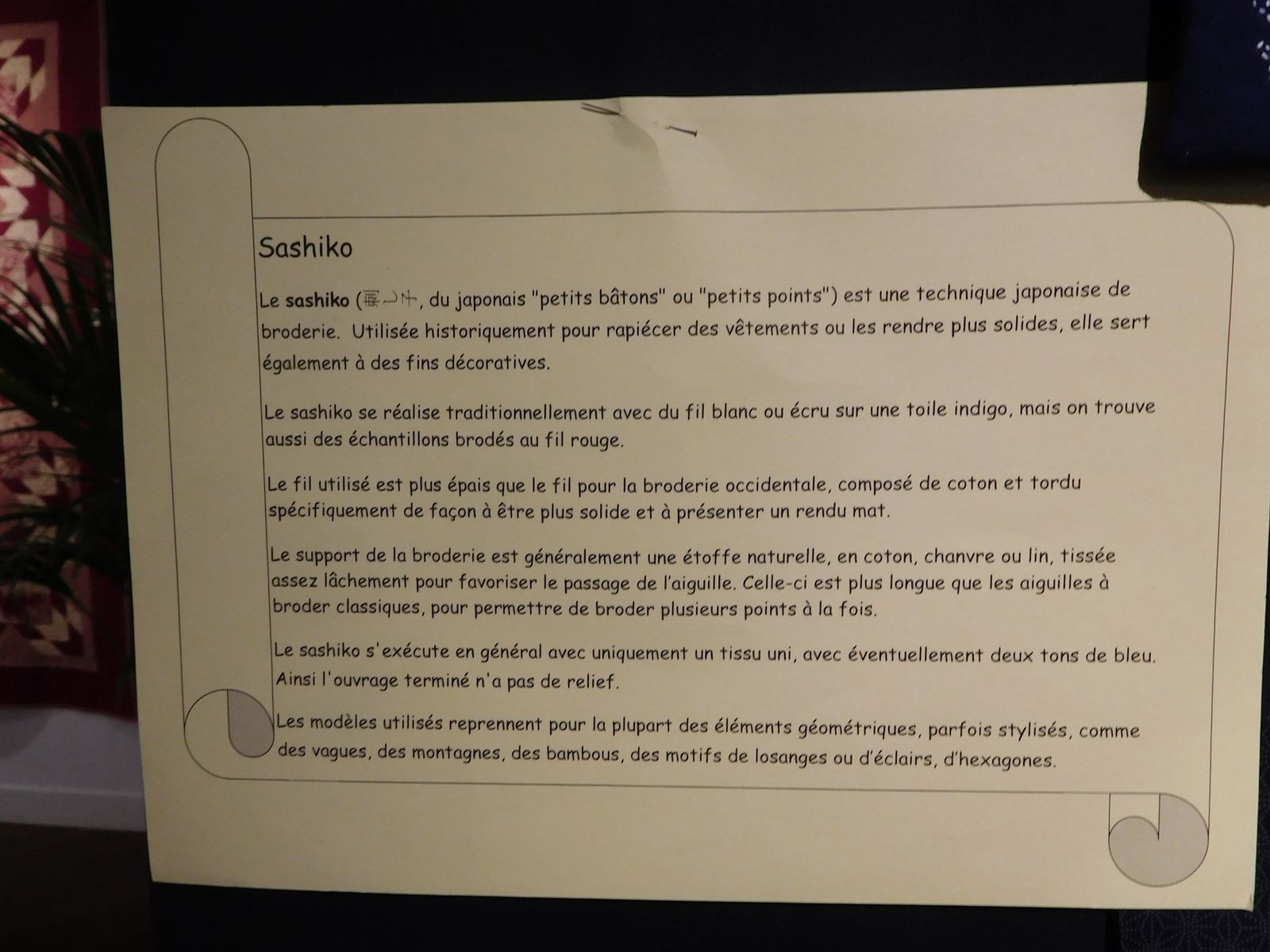 Arts Textile, Patchwork, Broderie, Recyclage, Sashiko etc Publié le 6 Novembre 2017 par L'Atelier de Berangere Catégories : #Découverte Une ouverture en fanfare pour cette 18iéme Exposition de PATCH PASSION au Moulin de la Vapeur d'Olivet, jusqu'au 11 novembre 2017.Ces assemblages d’éléments hétéroclites, aux motifs traditionnels, mais aussi aux doux noms:"Vol d'Oies, Chemin d'Ivrognes, Jardin de Grand-mère, Echelle de Jacobs, Pattes d'Ours etc. ont ravi mes papilles."Ces Arts ancestraux que les Couturiers s'approprient aussi, demandent aux passionnés, que je félicite un nombre inconsidérable d'heures de réflexions, d'assemblages, et de "Cousus Mains".La réalisation du Patchwork avait d'abord un but pratique de réutilisation de fragments de tissus divers.La tradition rapporte que ce sont les croisades qui ont apporté en Italie et dans le sud de la France cette technique trouvée en Palestine.Développé en Grande-Bretagne à la fin du XVIII siècle cet art se développa aux États-Unis à l'occasion de la forte immigration Britannique au début du XIX siècle.Au contacte des Anglaises, les femmes AMISH furent intéressées par ce mode de récupération qui correspondait exactement aux principes de Vie de leur Communauté.Du côté de l'Asie, la technique ne semble jamais s'être éteinte.( Je vous mets donc différentes réalisations avec des explications, mais attention ce n'est juste qu'un aperçu, aller voir cette exposition, pour mieux l'apprécier) Pour la suite, le SASHIkO, Associé aux tableaux textiles de Marie-Claire Mais aussi de très belle ICÔNES Un "Arbre Généalogique" comme vous n'avez jamais vue !!!Du recyclage "façon Ex-voto"Des BELLES et un Vin d'Honneur accompagnés de Cécile ADELLE Adjointe à la Culture d'Olivet.Un Patch machine et mainBelles découvertes, a toutes, et ne restez pas sur des aprioris!!! bah c'est du patch "Berck"Merçi a vous toutes Voir les commentaires Partager cet article Repost0