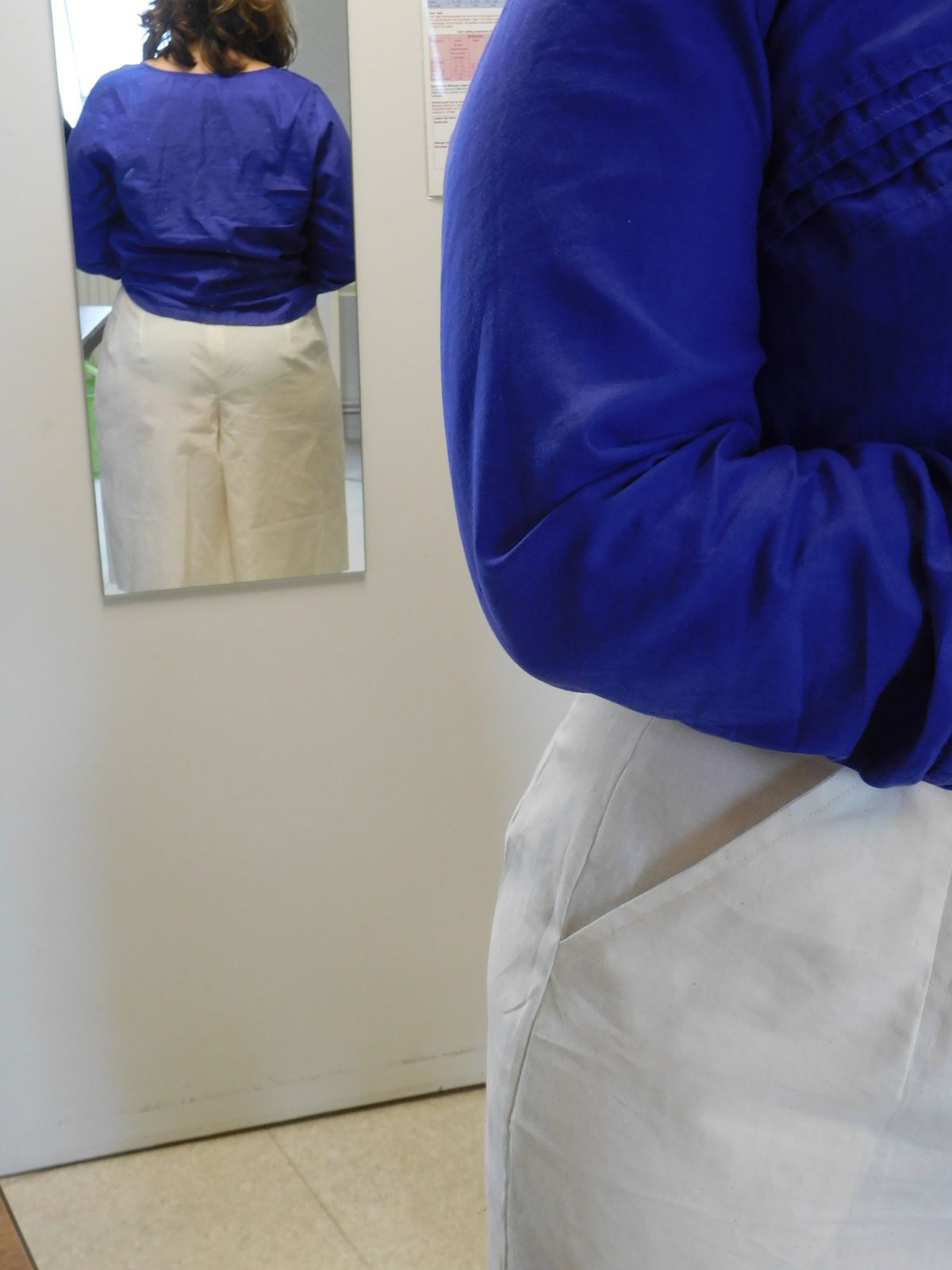 Le Sur-Mesure Niveau 1 envahit L'ADB, sans oublier les transformations de patrons existants Publié le 16 Avril 2018 par L'Atelier de Berangere Catégories : #Les Créations de l'Atelier Le virage entamé depuis 3 années est sur les rails, merci les filles pour votre confiance ainsi que votre enthousiasme concernant la découverte du sur-mesure.Oui je vous entends, c'est plus long effectivement de réaliser du patronage et ses transformations, mais une fois où vos toiles sont réglées à vos mesures tout va plus vite, car nous ne sommes pas toutes des 70/80/90!!!!Mais aussi en partant d'un vêtement existant pour reprendre le patron, merci Margot.Alors voici quelques réalisations en toile mais aussi en réel. Toile de jupe culotte en partant de la base de jupe, toile de la base maille pour le tee-shirt. Michèle s'est équipée d'une base que nous avons modifié sur "toutes les coutures" autant pour elle que pour ses filles.Sans en oublier toutes les différentes transformations, car l'objectif est aussi de ne pas acheter 150 patrons!!!désolée pour ceux qui les fabriques.. Michéle et sa base transformée STAGE d'initiation niveau 1 à la Surjeteuse du 7 AvrilJuste un petit aperçu pour aujourd'hui,un panel de marques différentes était représenté accompagné de fou rire, bienveillance, et oh! zut elle me fait peur cette machine!!!! Après la théorie et la pratique par pièces d'études, les filles repartent avec une modification de la base maille et une réalisation. STAGE DU 7 AVRIL, prochain 26 Mai Pour toutes celles qui souhaitent nous rejoindre pour la rentrée 2018/2019,les portes ouvertes avec un essai gratuit auront lieu en Juin. Belle découverte Voir les commentaires Partager cet article Repost0